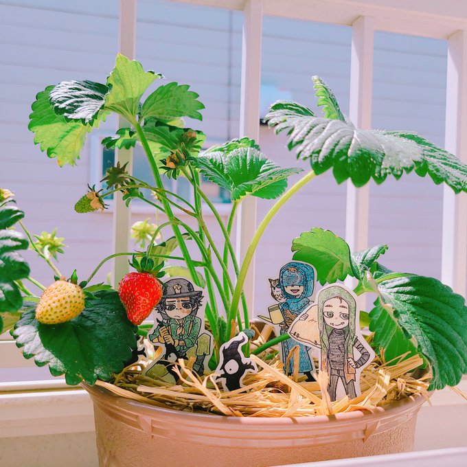 ENN組プランターピックできたーーーーーー!!! 計画通り縮んで色が濃くなった✌️✌️ 手の平サイズのENN組ばかかわいいな……らぶ…… 明日の朝、🍓の苗と写真撮りたい〜