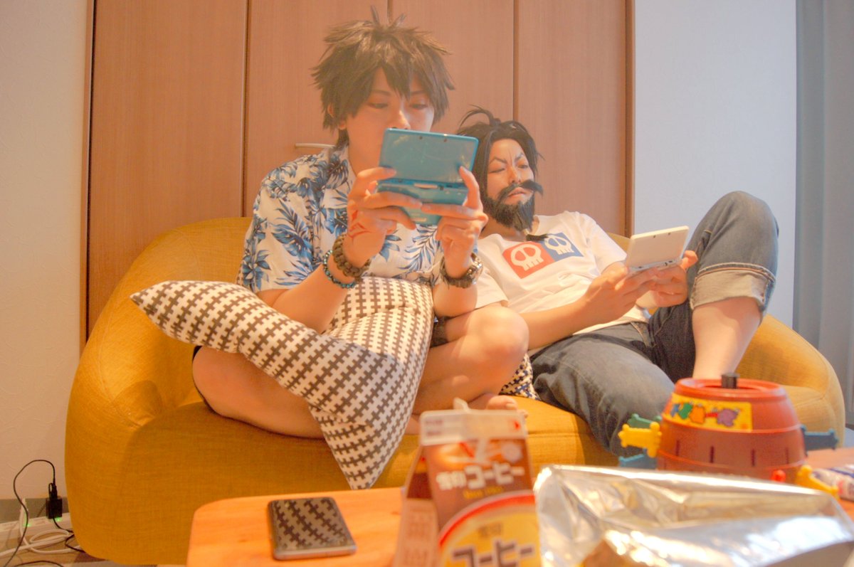 7 7 ⚠︎捏造⚠︎コスプレ⚠︎ 最高に楽しい夏の思い出。 お菓子とカップ麺食べつつ2.5次元舞台の円盤見て、変身ベルト付けてMHXXしました。 黒髭:SHUNサン @Urah_nuhs 撮影:蛍依サン ※撮影は2019年※ 21/07/31 13:11
