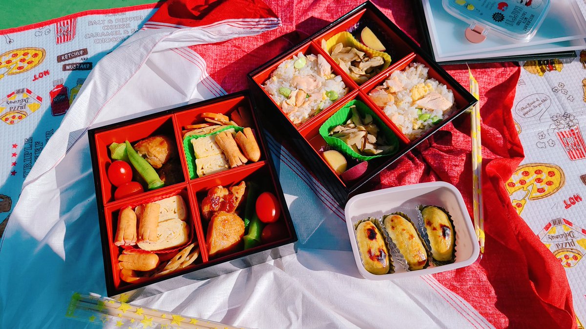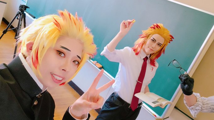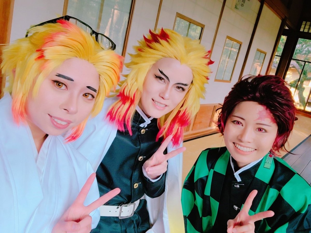 6 35 ⚠︎コスプレ ⚠︎鬼滅の刃 おそほ!! わゆさんと魔理緒さんとキメ学の煉獄兄弟してきた〜〜 今日の為にお重でガチ弁当作った✌️ 煉獄Tシャツ着てネタ写真も撮ったりしてめちゃくちゃ楽しかった〜〜〜 20/10/25 18:38