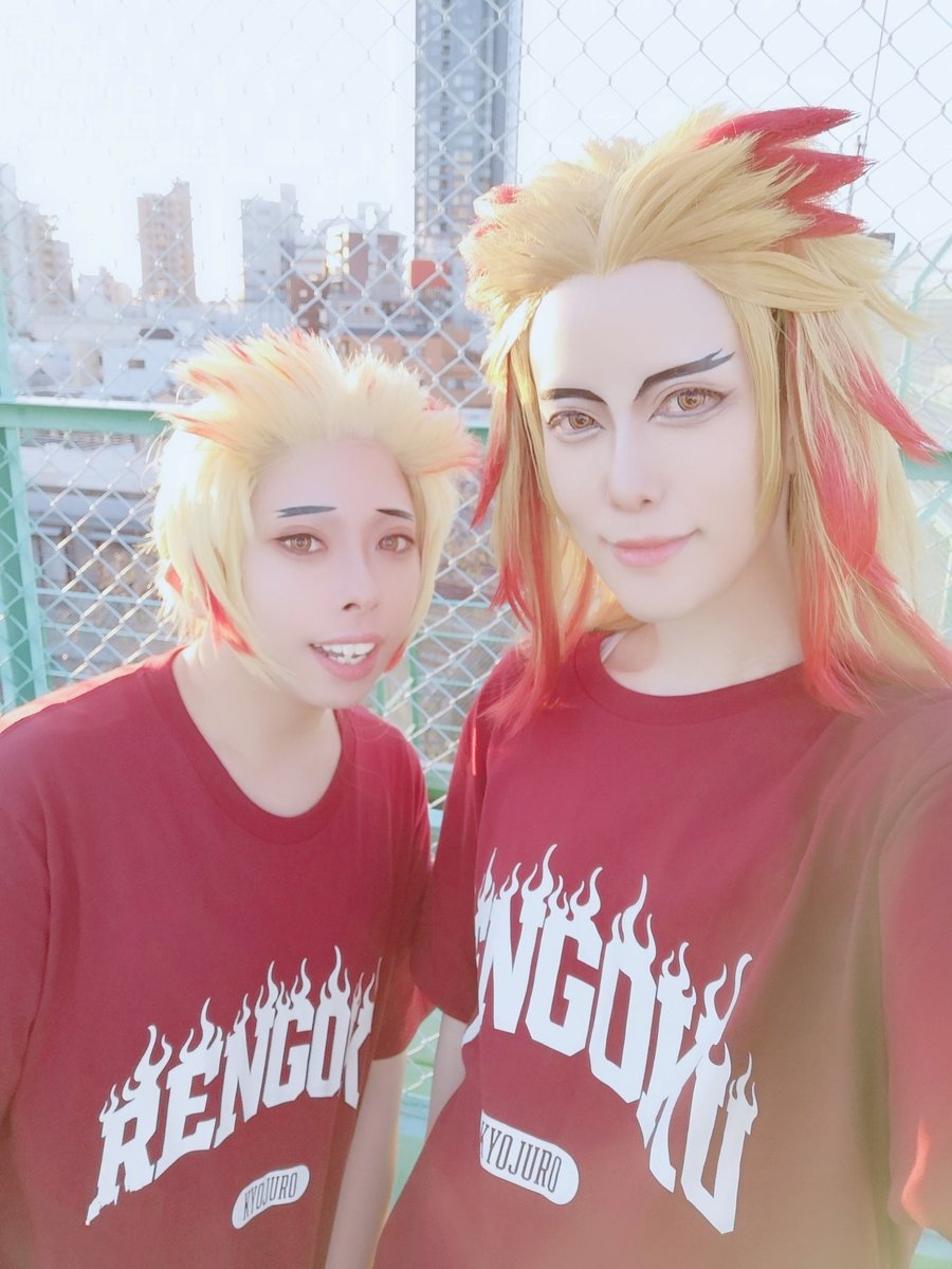 ⚠︎コスプレ ⚠︎鬼滅の刃 おそほ!! わゆさんと魔理緒さんとキメ学の煉獄兄弟してきた〜〜 今日の為にお重でガチ弁当作った✌️ 煉獄Tシャツ着てネタ写真も撮ったりしてめちゃくちゃ楽しかった〜〜〜
