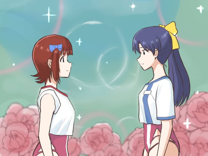 お互い出会った瞬間運命的な何かを感じているアマミハルカとキサラギチハヤお姉様 #イチニチハヤ #天海春香、#如月千早 #トップをねらえパロディ