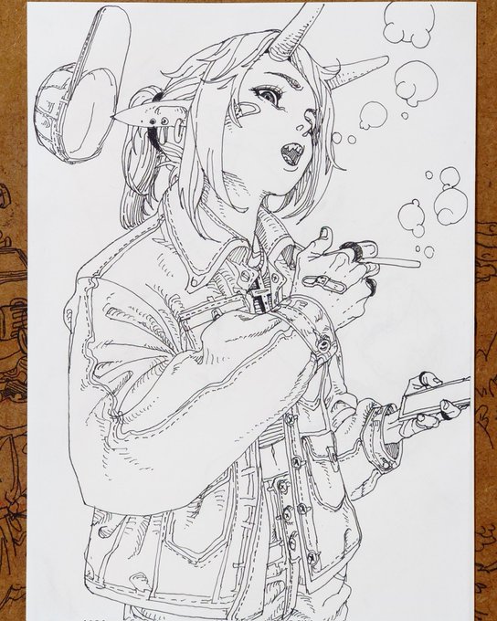 2 27 細ペンで落書き、後半インクが切れかけて思う存分描けなかった、悔しい。 #落書き 23/04/07 19:19