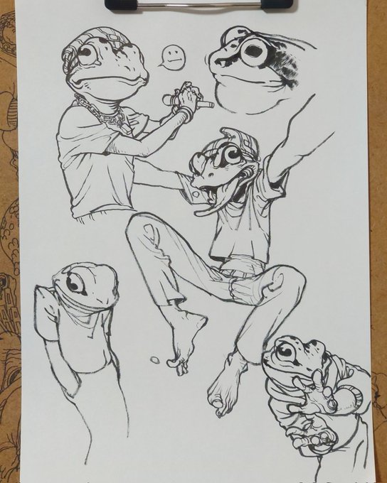 1 8 タコガールも手に馴染んできてる、ワニやカエルくらいにはパパっと描けそう。 #落書き 23/05/09 06:09