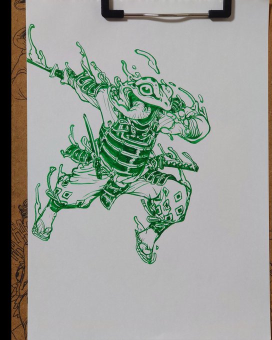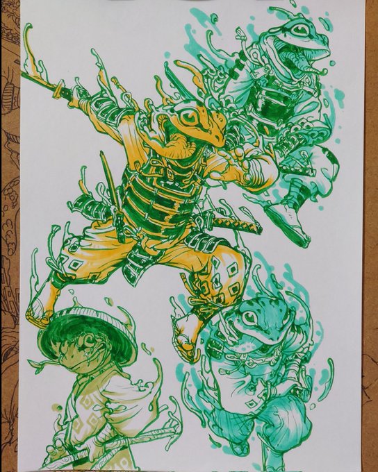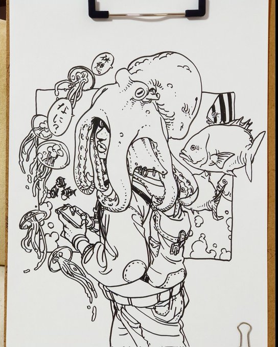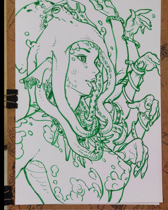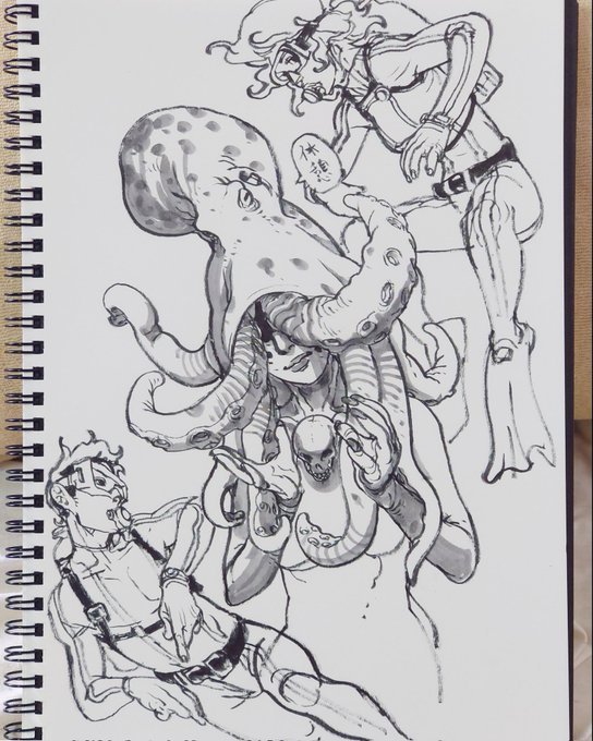 タコガールも手に馴染んできてる、ワニやカエルくらいにはパパっと描けそう。 #落書き
