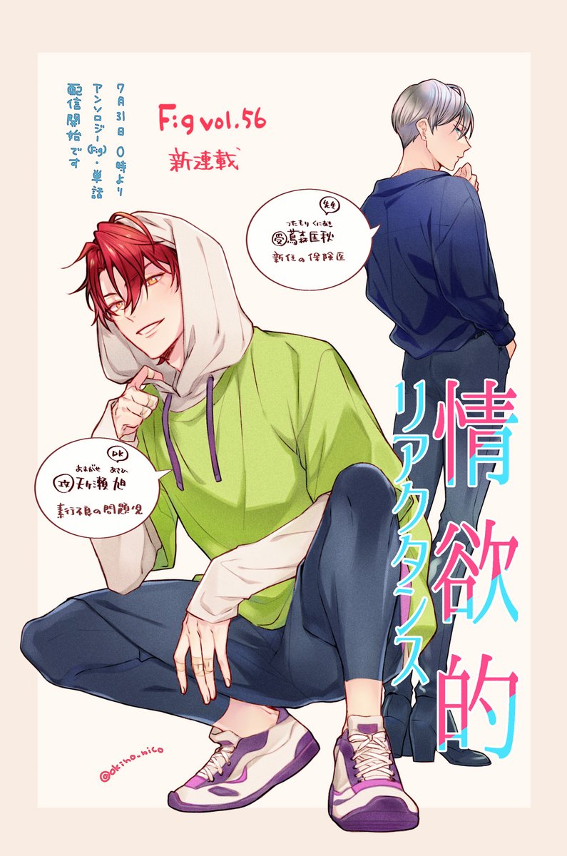 明日7/31(0時~)配信のFig vol.56より新連載『情欲的リアクタンス』がスタートします✨ 素行不良の問題児DKと美人保険医の更生ラブコメです💕単話もあります。よろしくお願いします~☺ #情欲的リアクタンス #創作BL #商業BL