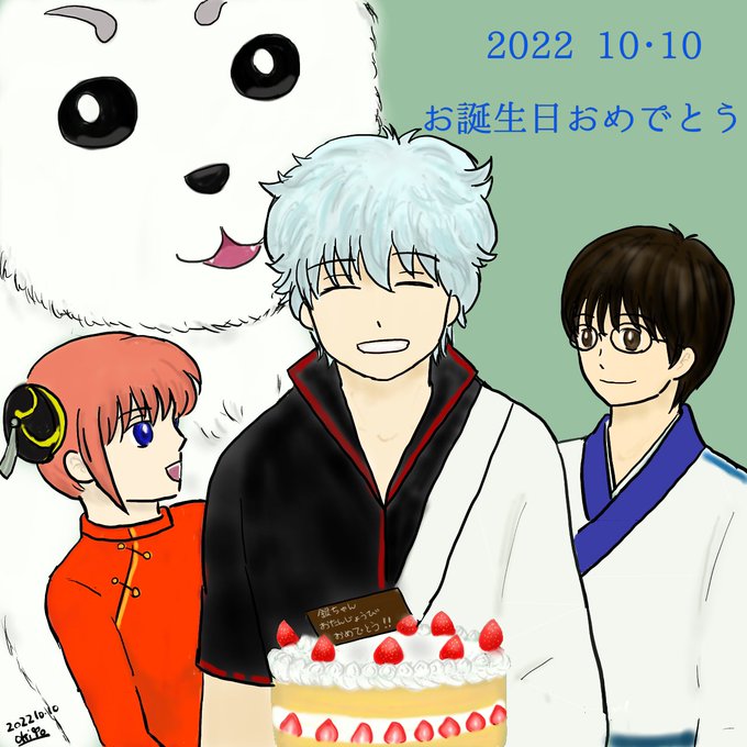 16 90 みんなに祝われて、笑って過ごしてください。 お誕生日おめでとう!銀さん! (なんとか間に合った😅) #坂田銀時誕生祭2022 22/10/10 10:13