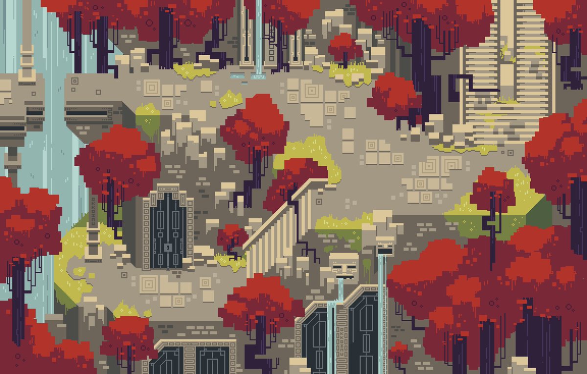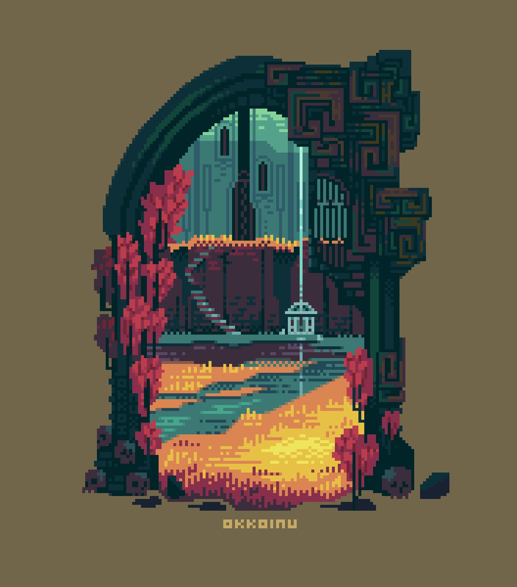 Buried Ruins — The labyrinth through which only The Moon can pass #pixelart #art #conceptart #landscape #ドット絵