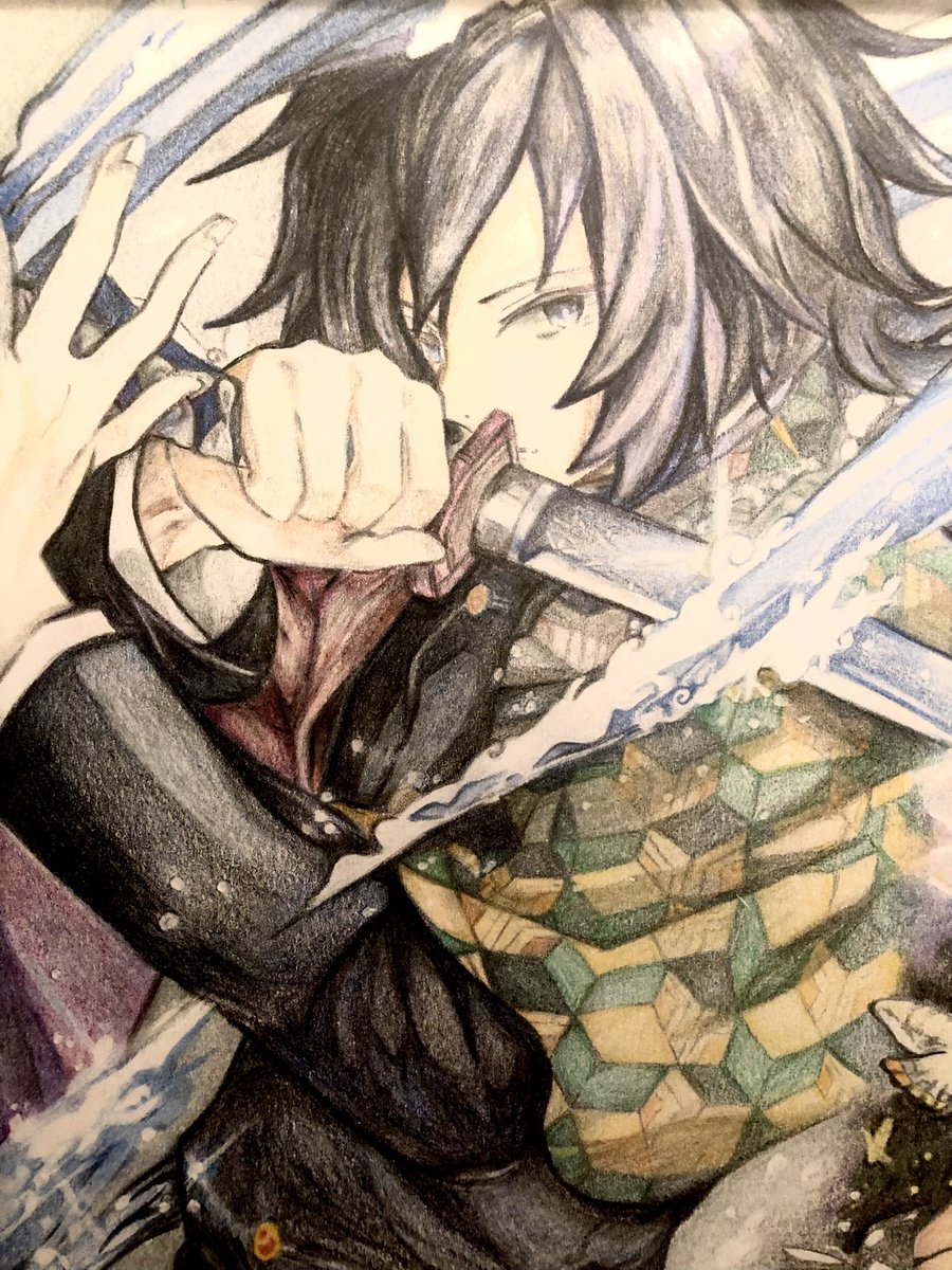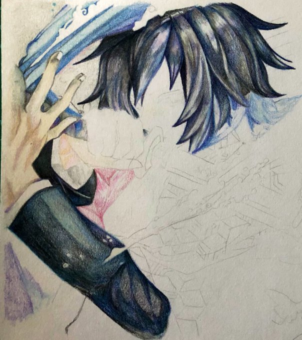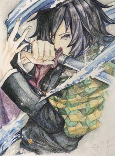 0 7 さぁ今日もバリ気合い入れて 仕事行ってくる💪 #色鉛筆 #色鉛筆イラスト #鬼滅の刃 #冨岡義勇 #模写が基本 20/11/21 06:56