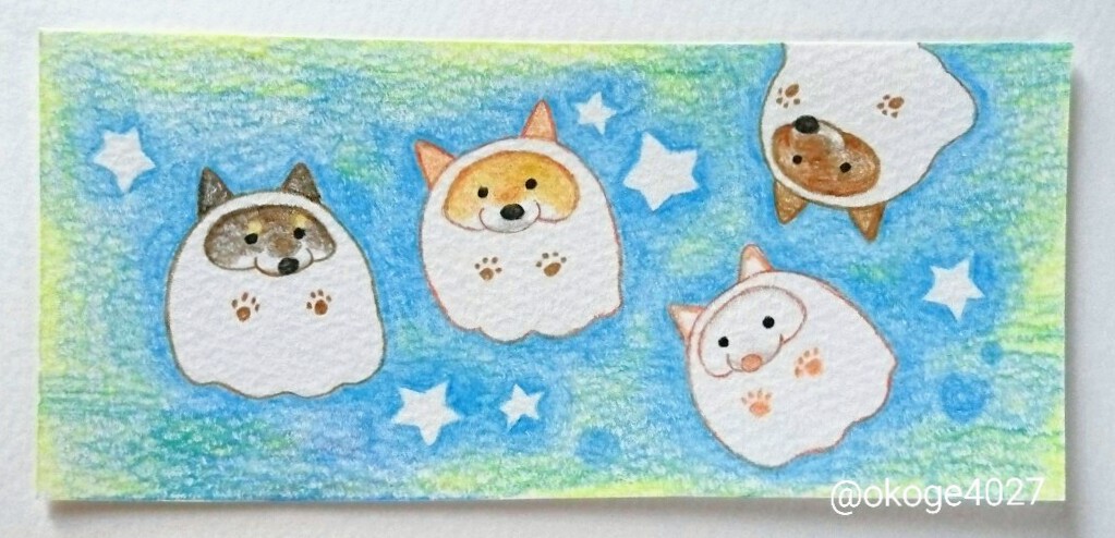 柴犬コゲさん(20歳5ヶ月と24日) 本日の明け方に永眠いたしました。 絵は父が今朝描いてくれたものです。写真の代わりに載せさせて頂きます。とても穏やかな美しいお顔で旅立ってくれました…本当に良かった。強い子でした、よく頑張りました(拍手🌸) #秘密結社老犬倶楽部 #秘密結社老犬倶楽部天国支部