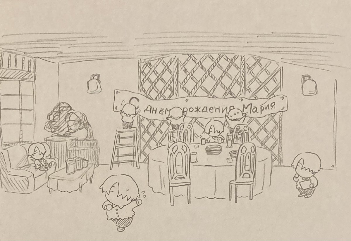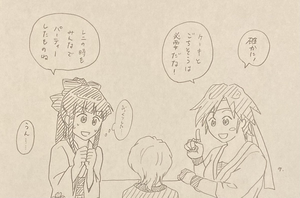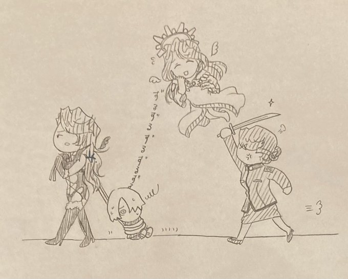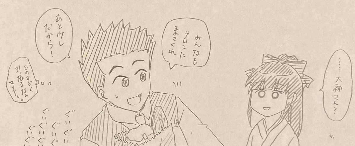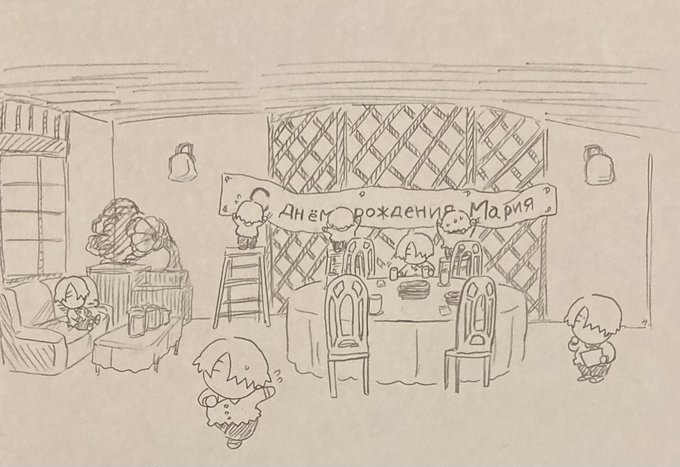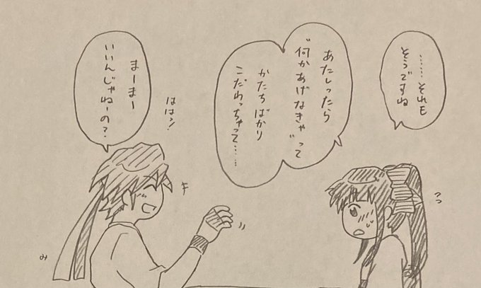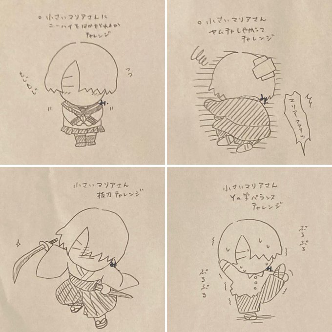 #4月になったのでフォロワーさんに自己紹介しようぜ ゆるふわ(自称)、ギャグ、不穏等等……アナログでカキカキしています。マリアさんを小さくして増やしました。後悔はしていません。 今月の目標は……寒暖差に負ケナイ、です。 あと食べるのが好きです。家系二郎系お肉にお酒に甘い物……等。