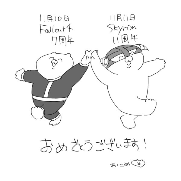 “Fallout 4”7周年、“Skyrim”11周年おめでとうございます!