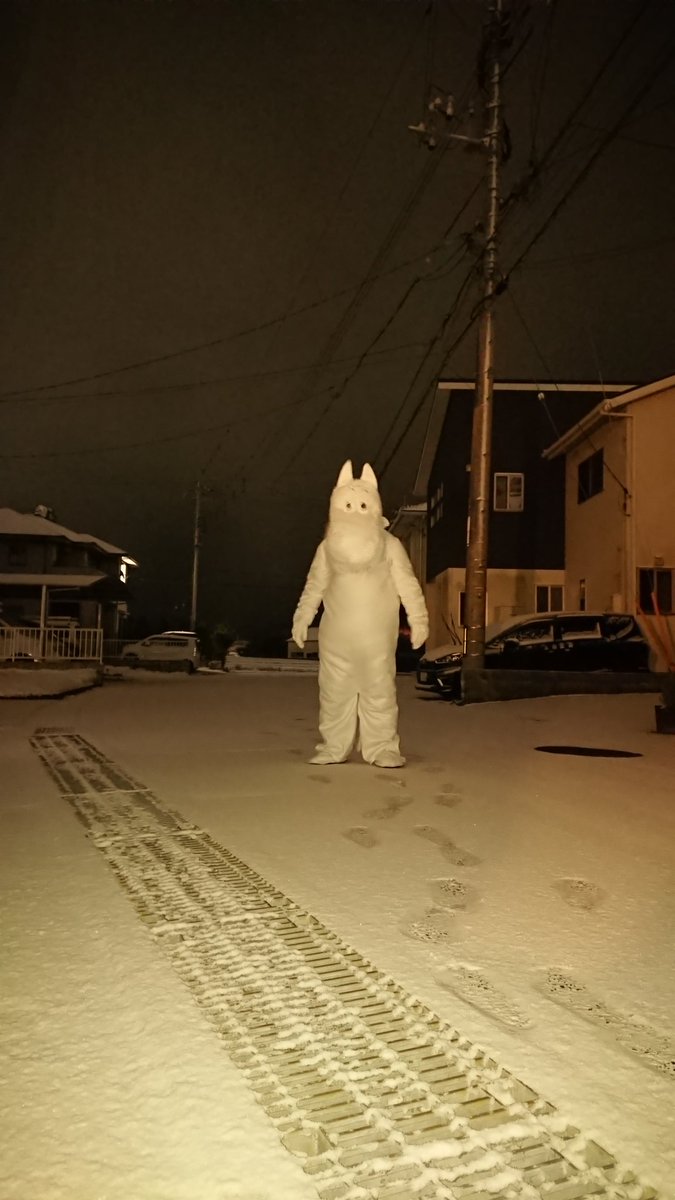 雪の日の夜中にムーミンのコスプレして自撮り #多分私しかやってない