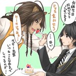 イデア氏の髪塗り難儀した。 一応イデ監♀ シャツ借りて楽な格好で友達とダラダラする♀バレしてないと思ってる監督生+♀とわかってるけど気まずくなると嫌なのでその事には触れないのに彼シャツだし近いし!とアワアワするイデア氏を描きたかった。 #ツイステファンアート #イデ監 タグ忘れで上直し
