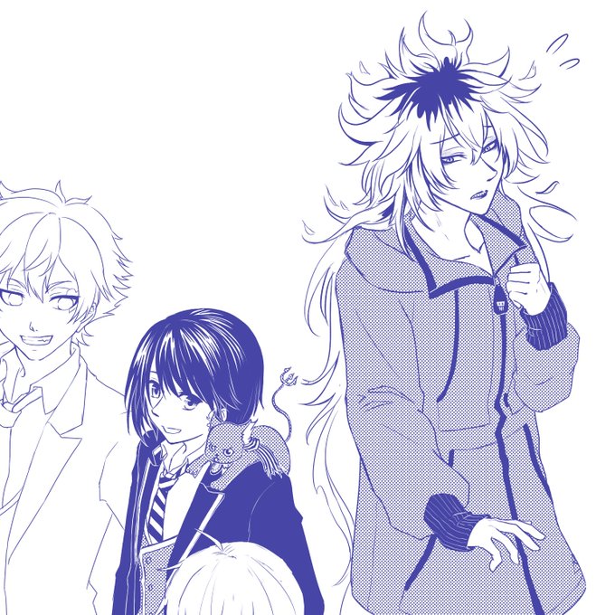 一応イデ監のつもりよ! 話しかけたいイデア氏! マブ2人はモブ扱い(´ε`;)(めんどくさくなったとか疲れた訳じゃないこどない。下にある頭は♠) #ツイステ #ツイステファンアート #イデ監 、、、?