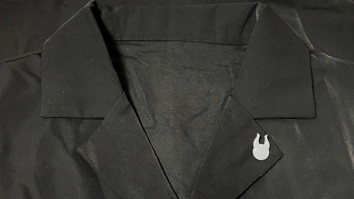 はこたろさん刺繍できた📦 良い色の服があったので服に刺繍 着るとこの位置にくるよ(3枚目) ちょっとゆがんでしまったけど及第点!いつかやり直そうかな📦 #bintrollFA …? #はこたろーisGOD #びんとろ手芸班
