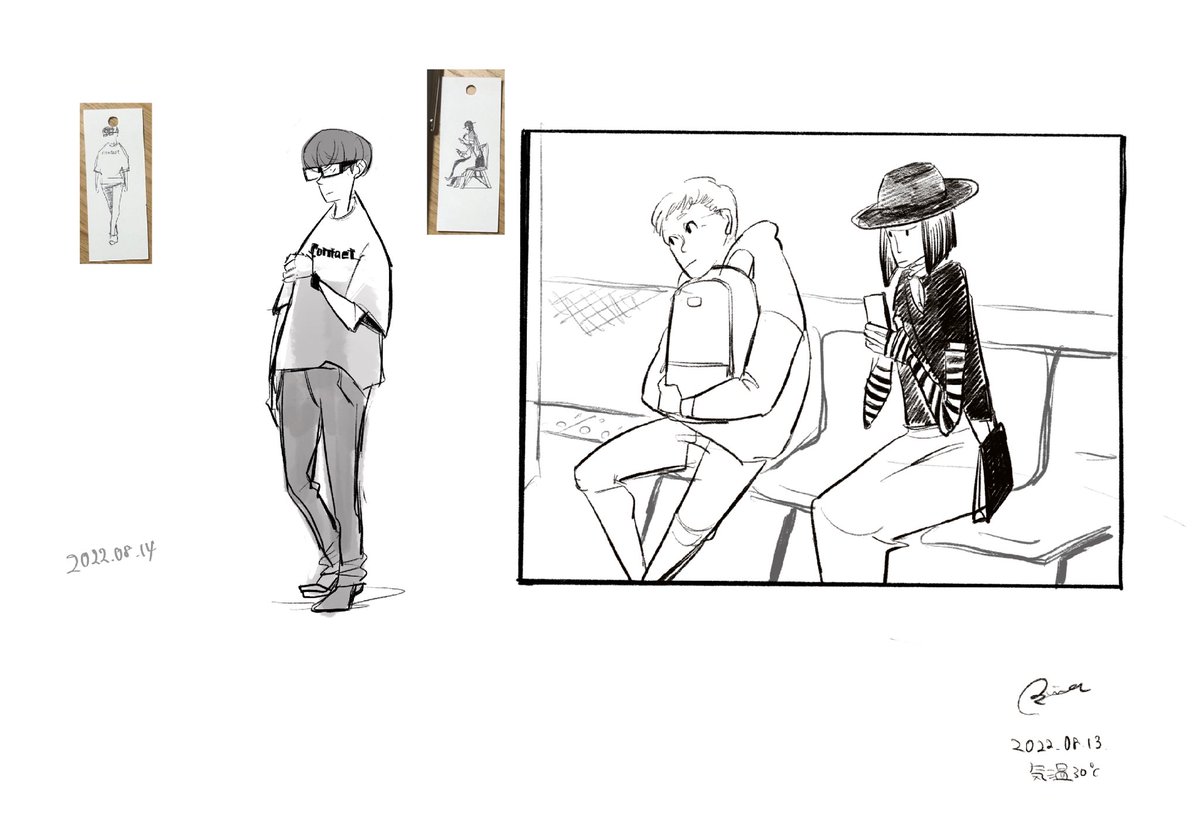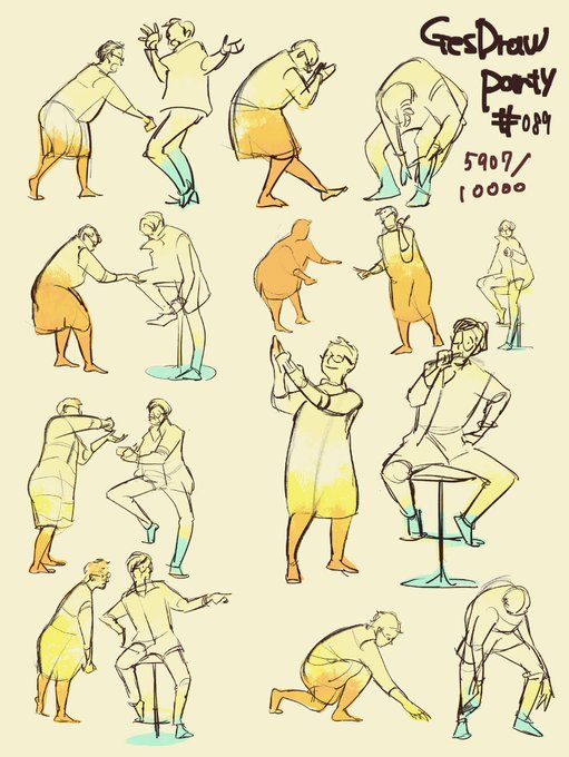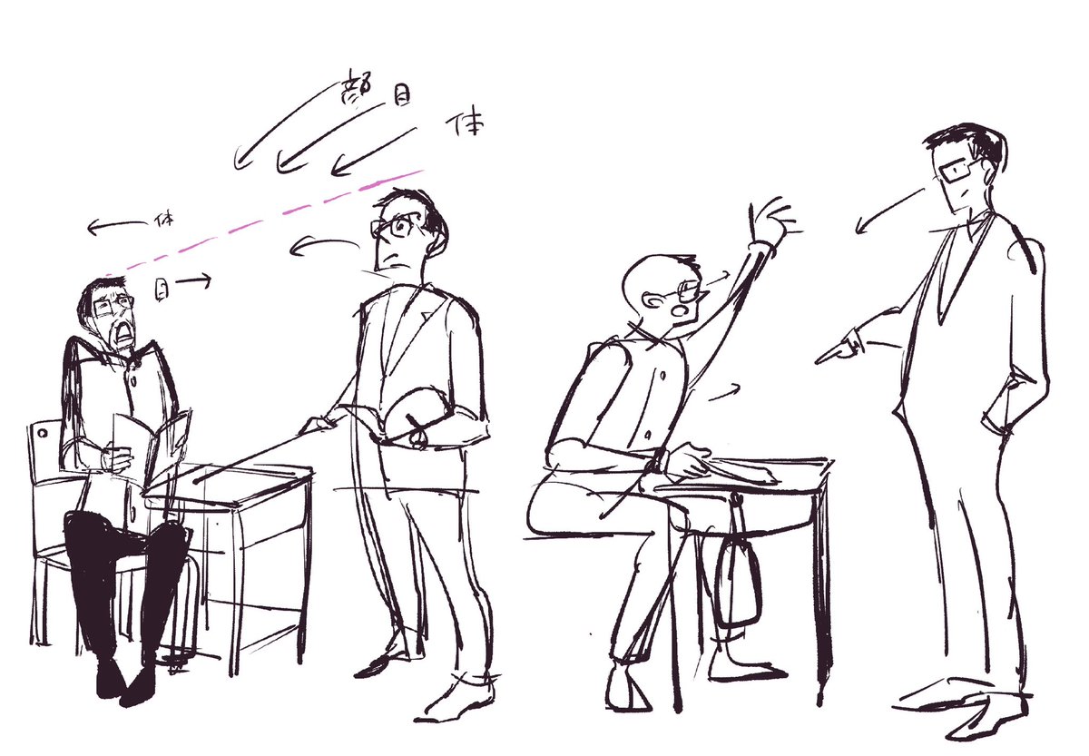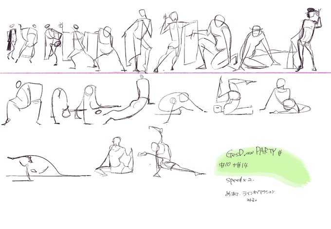 倍速じぇすどろパーティと静止画ドローイング。同じ立ち位置でも体の向きや姿勢で意欲とか出せるな🤔 岩本さんのドローイングをする時は毎回「リズムとフォース読もう...」って思う #じぇすどろパーティ