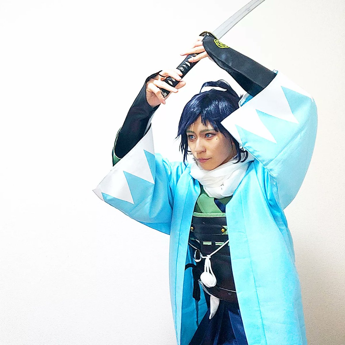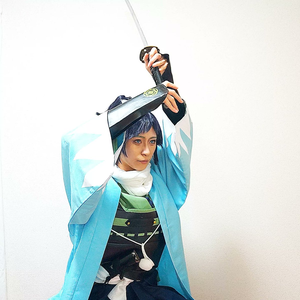 #100日チャレンジ 81 day 大和守安定 cos. 基本姿勢【上段】 剣道のとは別物! 殺陣は怪我防止、そして刀の重量感を表現するのでこの角度…… みたいなことを殺陣教室では解説してます☆