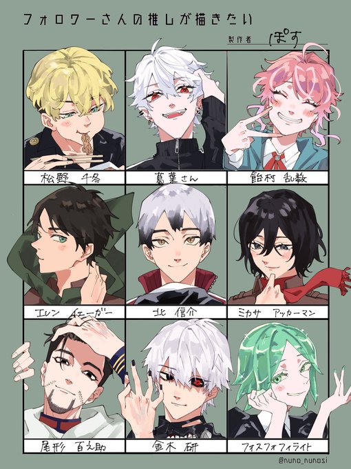 10 44 #フォロワーさんの推しが描きたい 大変お待たせいたしました‼︎ 描いたことあるキャラもないキャラも全部楽しかったです☺️ リクエストありがとうございました! みんな顔ええなあぁぁ 22/05/10 19:09