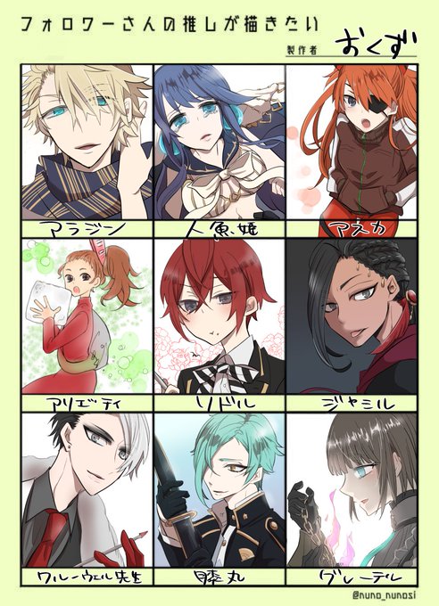 先日はアラジンしか書いてないアンケートにお付き合いいただきありがとうございました!!!票数にびびってちゃんと描きました!!!!(懲りずにまた遊びだしたらお付き合いいただけると嬉しいです(*'ω'*)) オルタのデレラ👠とアラジン #シノアリス_ファンアート twitter.com/okuduuu/stat…