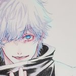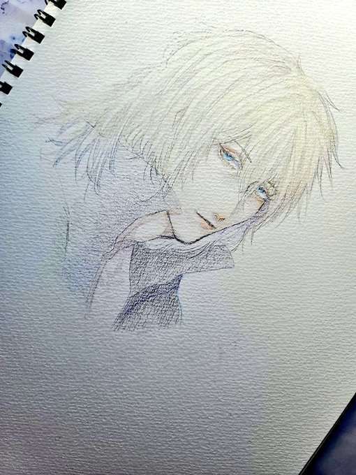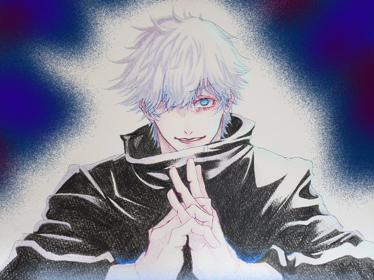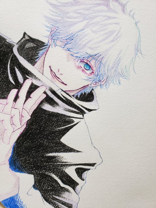 五条先生~‼️ 茈~‼️ #五条悟 #じゅじゅプラス #じゅじゅぷらす 色鉛筆が無くなりそうだったので背景の色はアイビスで入れました