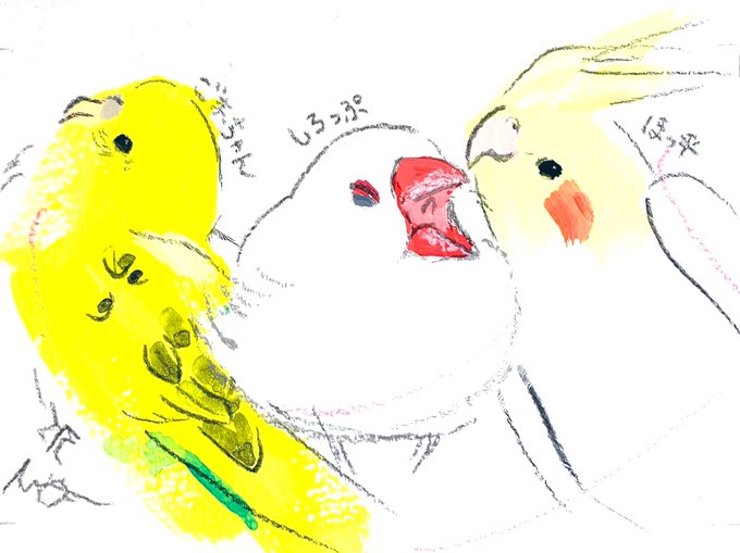 15 128 セキセイインコさん、文鳥さん、 オカメインコさんを描きました #小鳥のアートフェスタin横浜 #オーダーイラスト 21/08/28 15:39