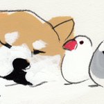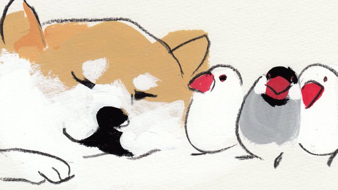 14 92 芝犬と文鳥たち。過去作品。 この絵を気に入ってくださり 再度描かせていただきました。 20/05/06 11:32