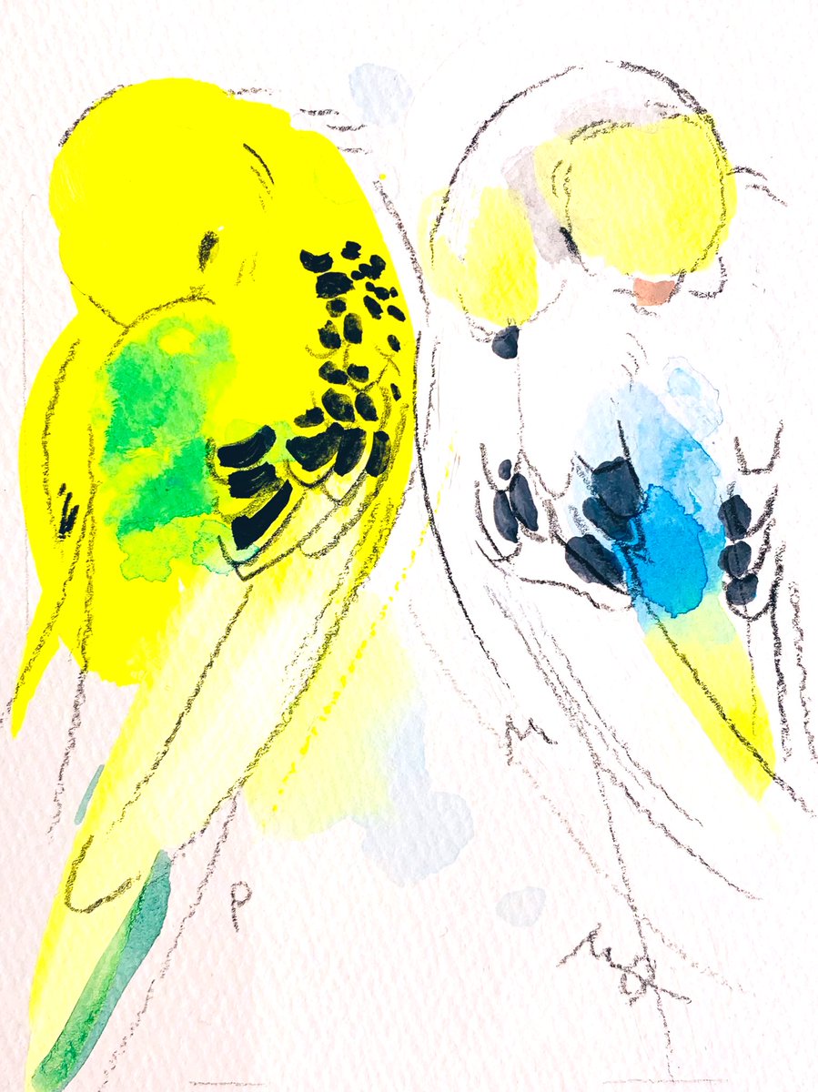 マメルリハさんとサザナミインコさん描きました。2/23(水祝)から始まる #小鳥ガーデン に持って行きます。