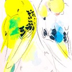 おはようございます。#小鳥ガーデン で描かせていただいた、セキセイさん&オカメさんの組み合わせの作品2つ!早いもので本日最終日です (17時閉場です