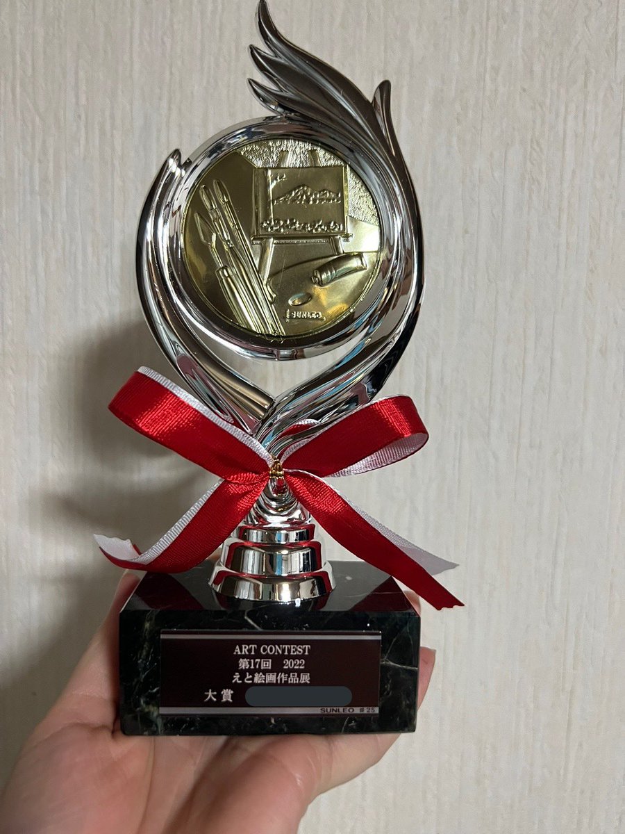 あ!去年えと絵画作品展にだした絵なのですが大賞いただきました(o^^o)トロフィーもらったの初めてですごくテンションあがりました✨ありがとうございます! #スクラッチアート