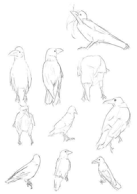 #おはクロ 鉛筆っぽいブラシだけでカラスを描こうとすると、あんまりうまくいかない感。クロッキーもやり方を考えないと、ただの意味のない素振りになってしまうから自戒したい