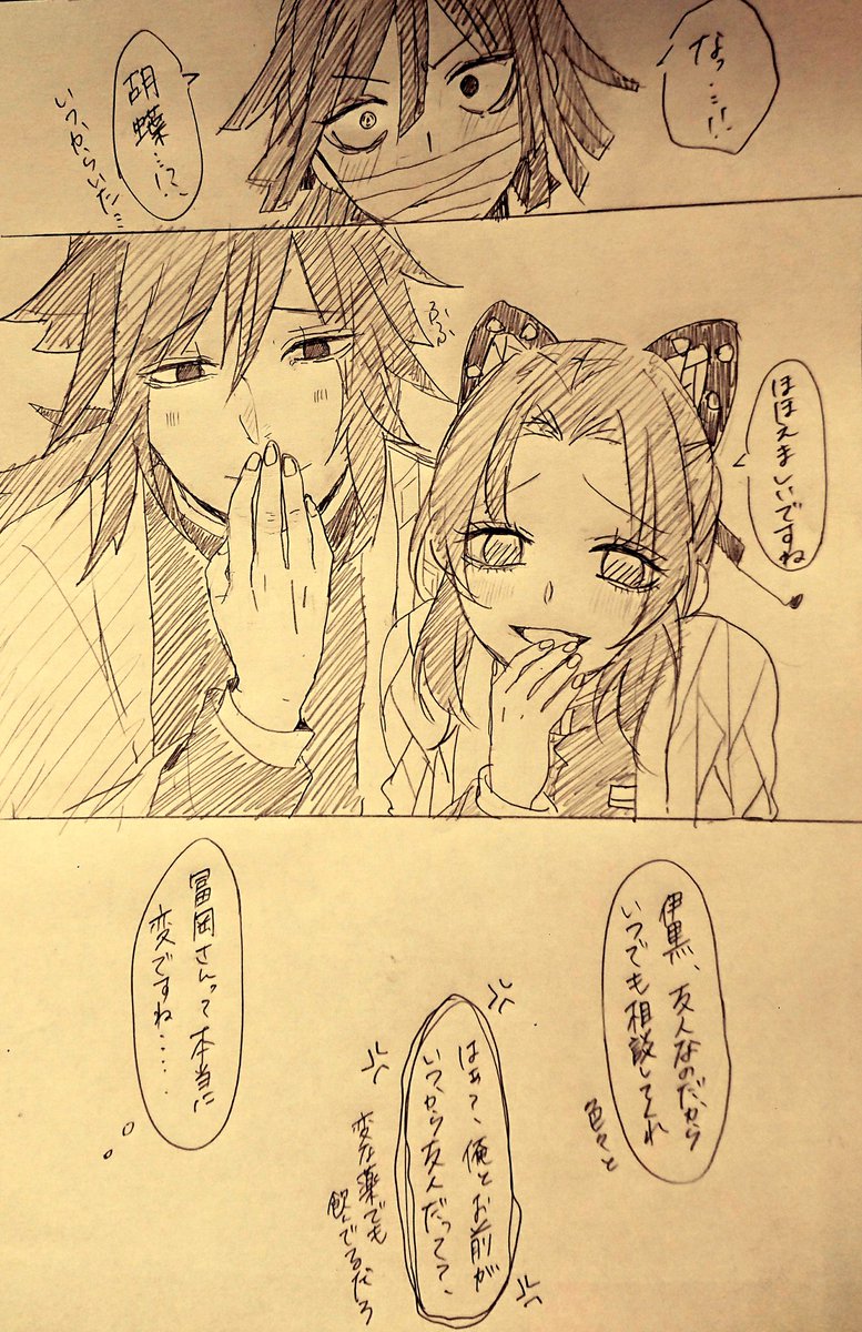 126 1006 ぎゆしの漫画🌊🦋+宇髄さん 【愛してるゲーム】 レアな照れ顔冨岡さんを見れてしのぶちゃん思わず笑みが😘💗 21/01/30 21:13