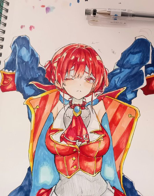 63 326 ペン描き船長🏴☠ #マリンのお宝 #ホロライブ #アナログイラスト #絵描きさんと繫がりたい 22/10/07 18:48