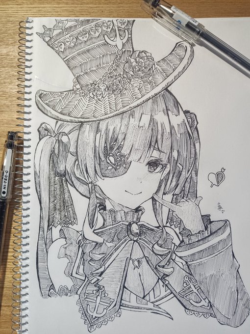 ペン描きゴスロリ船長! めっちゃ時間かかった…😅 #マリンのお宝 #ホロライブ #絵描きさんと繋がりたい