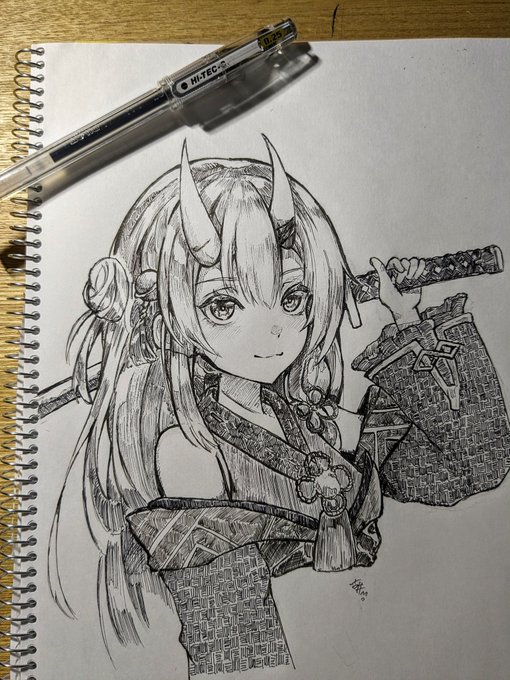 142 1016 シオンたんをペン描きしました! #シオンの書物 #ホロライブ #絵描きさんと繋がりたい 23/04/20 19:36