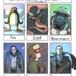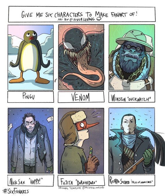 #sixfanarts done! I'm working on 12 more, but these are ready for the world! #pingu #venom #winston #nicksax #fujita #dorohedoro #ricardosoldato