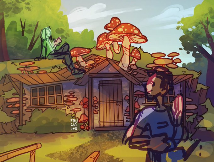 A drawing of George's first mushroom house on the smp:) 🍄 it's still a work in progress, I started drawing this in February and I'm not sure if I'll finish it any time soon, so I just wanted to share what I've got so far. #dsmpfanart #dreamfanart #georgenotfoundfanart