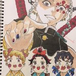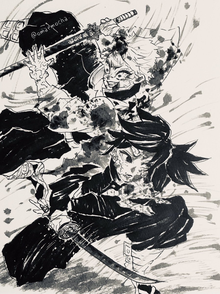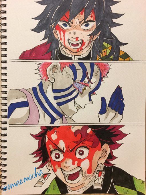 けっこうな流血にご注意⚠️ 原作とちょっと違う所もある… #絵描きさんと繋がりたい #絵師さんと繋がりたい #アナログ絵 #鬼滅の刃 #イラスト好きな人と繋がりたい #イラスト #模写 #冨岡義勇 #猗窩座 #竈門炭治郎