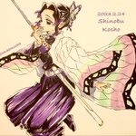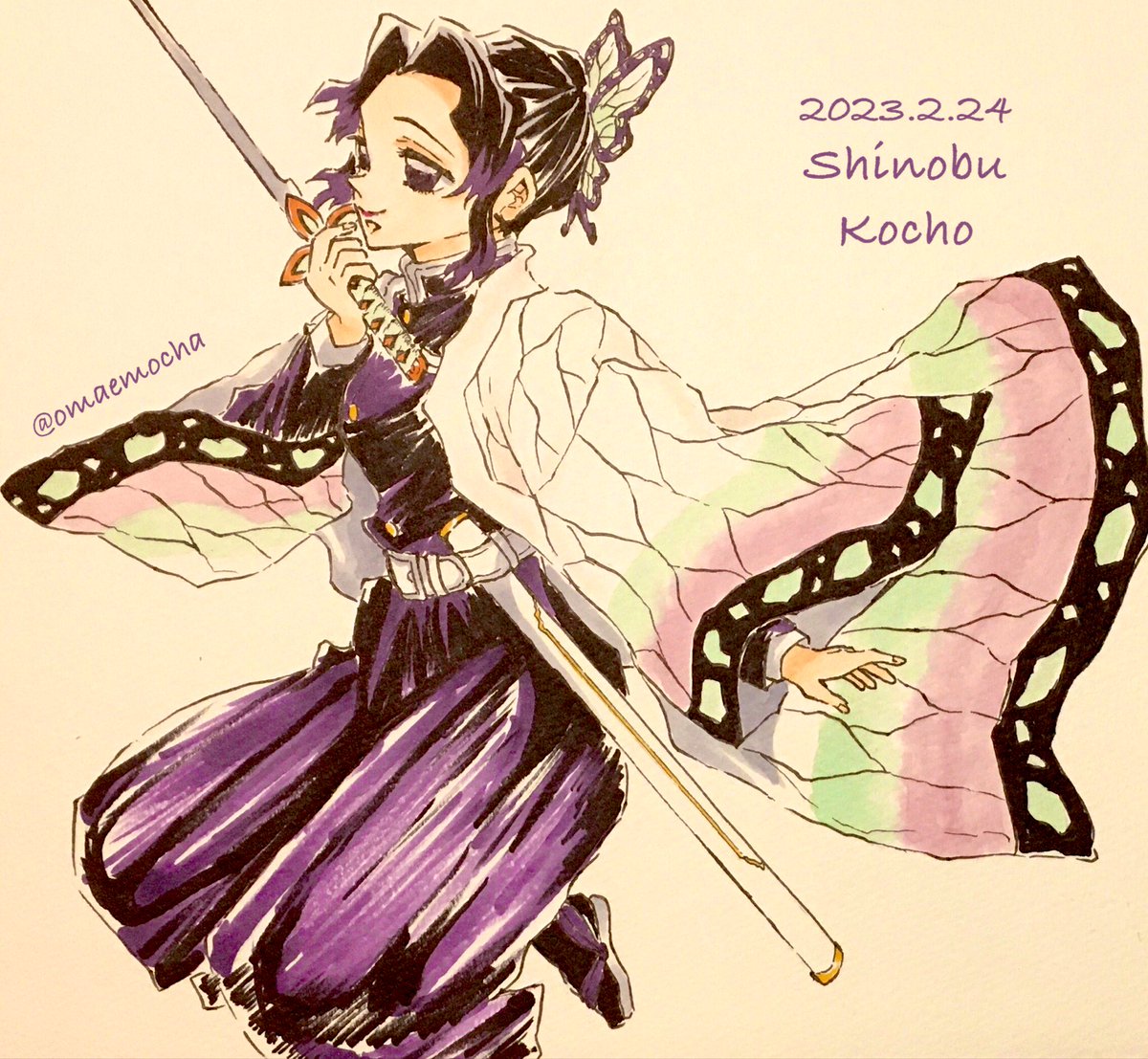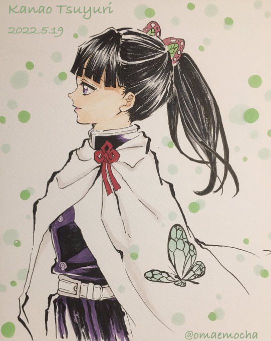 おめでとう🦋🎉✨ 昨日思い立って描き始め何とか間に合いました。カナヲちゃんの雰囲気難しいですね💦 #栗花落カナヲ生誕祭2022 #栗花落カナヲ誕生祭2022 #模写 #アナログ #イラスト