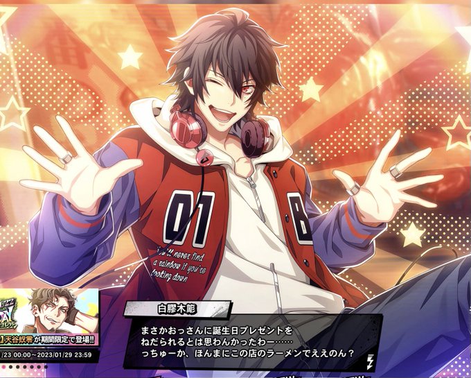 0 3 和装の山田三郎が登場中! #ヒプマイARB #ARB3rd_Anniv ▼録り下ろしボイス付きログインボーナス開催中! bit.ly/3tFotyn 23/03/19 00:08