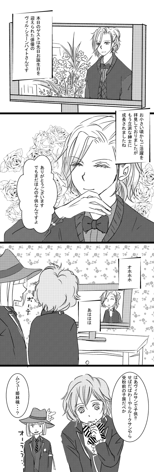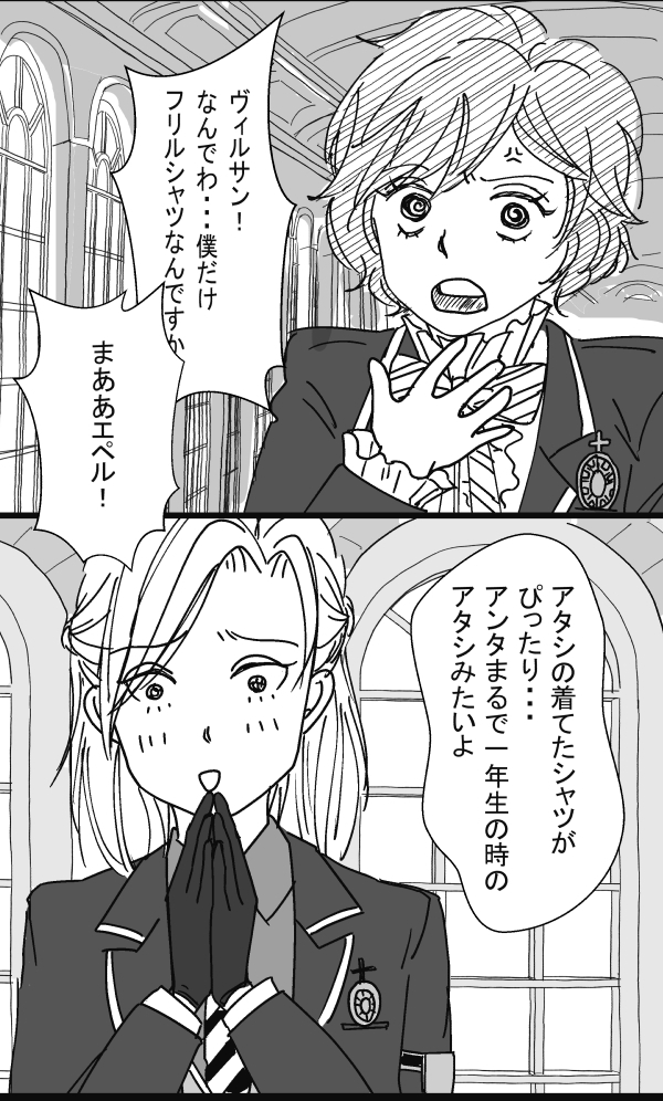 ツイステオンラインイベントの漫画。 ポムフィオーレ推し。最初はカノウ姉妹+グッドルッキングメンだと思ってた。 ちびまる子ちゃんとお母さんと花輪君みたいだった。 #ツイステファンアート #エペル・フェルミエ #ヴィル・シェーンハイト #ルーク・ハント