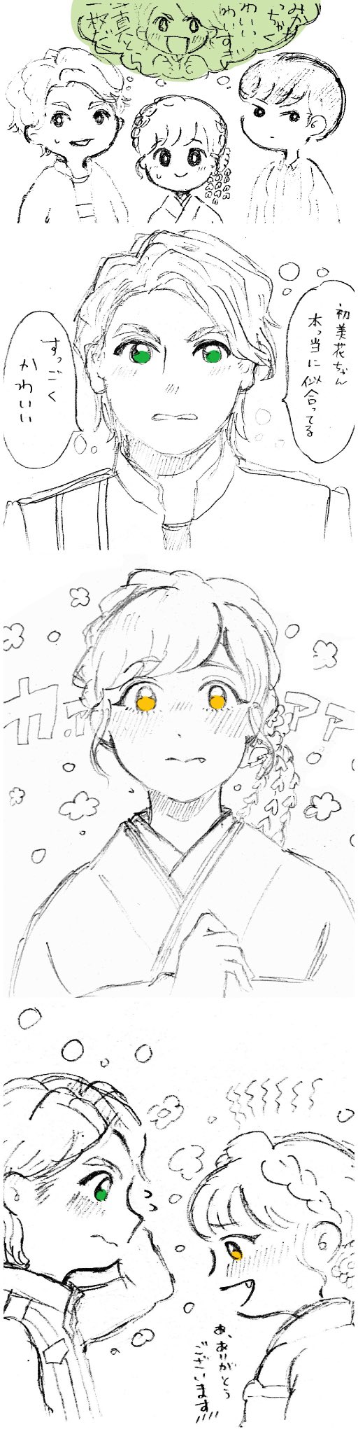 9 28 ⑩ 初美花ちゃんの晴れ姿を咲也くんがみたら〜ってやつ 大騒ぎしないパターンも良くないですかね… そして来週に続く感じで情緒不安定になる… #特撮版深夜の真剣お絵描き60分一本勝負R 19/01/06 23:24
