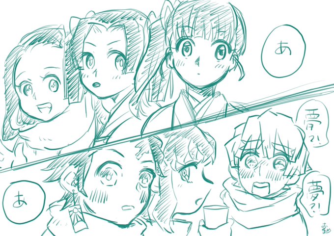 あられさんの伊アオ大学生と高校生の設定を伺って、 20歳アオイと18歳伊之助〜ってなりました 大学の付き合いでお酒飲んで酔ったアオイに絡まれるのかわいい 画像は眠りながら描いた落書き