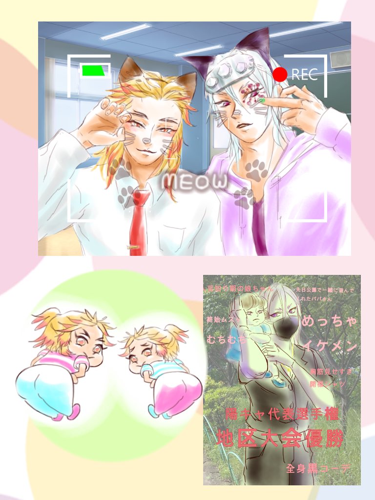 #今月描いた絵を晒そう デジタル4ヶ月目 アイビス背景素材を多用した月でした🤣 おか○つパロは描いててとても楽しかったです!! お話付けて頂いたり✨ネタ被りで猛省したりしました。 最後は例によってカオス!ニョタ&女装有り!!お気をつけくだされ😘