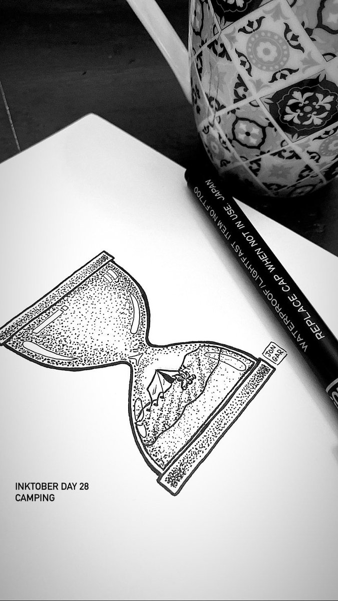 It’s time to go camping ⌛️ Inktober Day Camping 🏕️ 🔥 #inktober #inktoberday28 #inktobercamping #inktoberprompts #inktober2022 #camping #illustration #sketch #cartoon #comic #artwork #artist #tent #fire #night #sandclock #clock #sand #desert #wood #glass #trip
