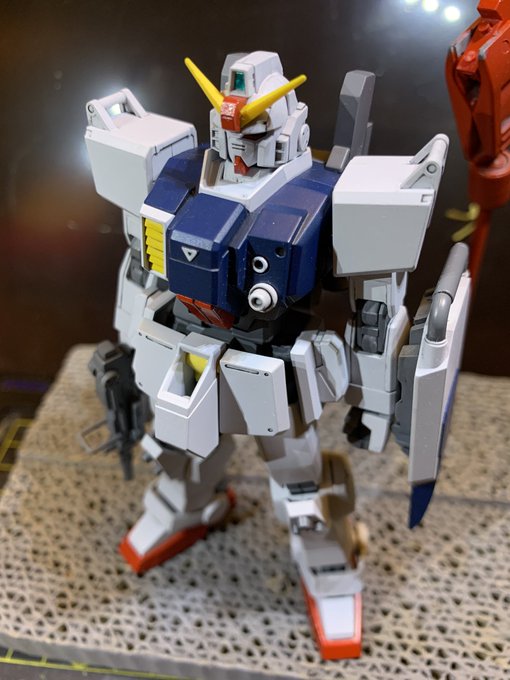 やっとこさここまで。 またまた股のV字塗装で詰んでます。 老眼に1/144は辛いです。 #ガンダム #ガンプラ #オリジンガンダム #筆塗り
