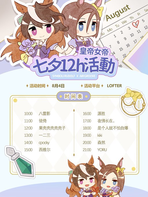 八月四日は中国の七夕で、その日に中国の皇帝女帝民が主催するスペシャルイベントがあります!朝10時から夜9時まで、1時間ごとにLOFTERにおいてルドエア/ルドグルに関する小説や絵を発表することになっています。よかったら、ぜひ遊びに来てね!☺️