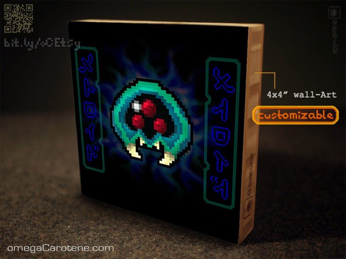 for once, an actual real Metroid 6" #oCwallArt photograph~ 😎 Can you tell that the photo at the bottom is fake? #メトロイド [🦑] #pixelArt twitter.com/omegacarotene/…