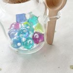 大好きなメテノ作った🌟 とぅるんとぅるんの仕上がり〜✨ 画像ではわかりにくいけど、中に細かいホロを忍ばせたからキラッとキレイです! それとキャンドゥのスプーン付き小瓶がめっぽう可愛い♪ #七夕 #ナツメイド