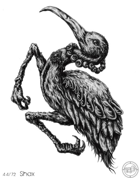 샥스 이빨이랑 이름때문에 상어인 줄 알았는데 왜 황새지? 싶어서 찾아보니까 샥스(Shax)는 황새의 모습을 하는 악마라고 하네요 돈과 말을 훔치는 걸 좋아하고 거짓말쟁이라 말하는 대부분이 거짓말이래요 반면 푸르푸르(furfur)는 날개달린 사슴의 모습인데 천둥번개와 부부간의 사랑(!)을 다룬다고 twitter.com/FYeahGoodOmens…