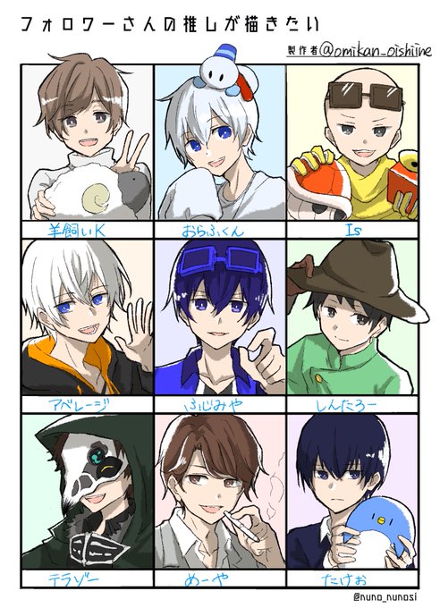 リプくれた方々ありがとうございました〜!!あんまり描いたことの無い人もいて楽しかった!! #フォロワーさんの推しが描きたい
